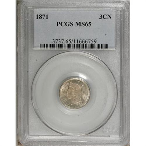 1871 3CN MS65 PCGS. PCGS Population (32/21). NGC C
