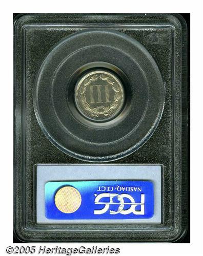 <B>1871<3CN> PR65 PCGS.</B></I> Essentially untoned with bright, glassy mirrors and a touch of planchet roughness on Liberty's cheek.