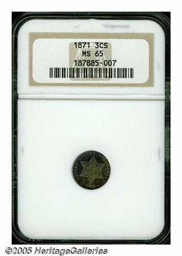 1871 3CS MS65 NGC. Only 3,400 business strikes we