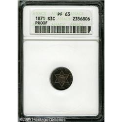 <B>1871 3CS PR63 ANACS.</B></I> Original with a scattered overlay of rose, champagne, and navy-blue patina. A seemingly conservatively graded example. Lot:5684