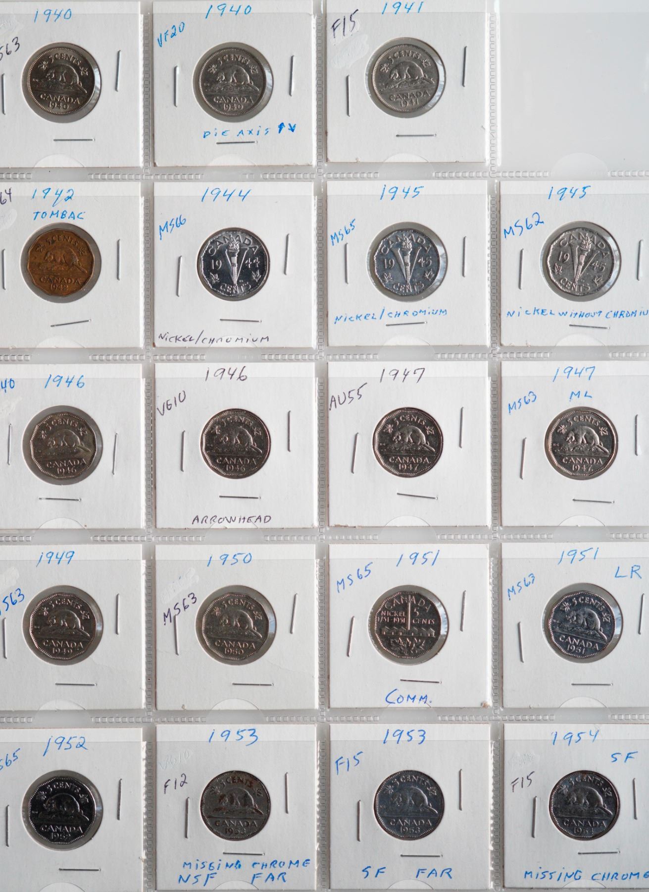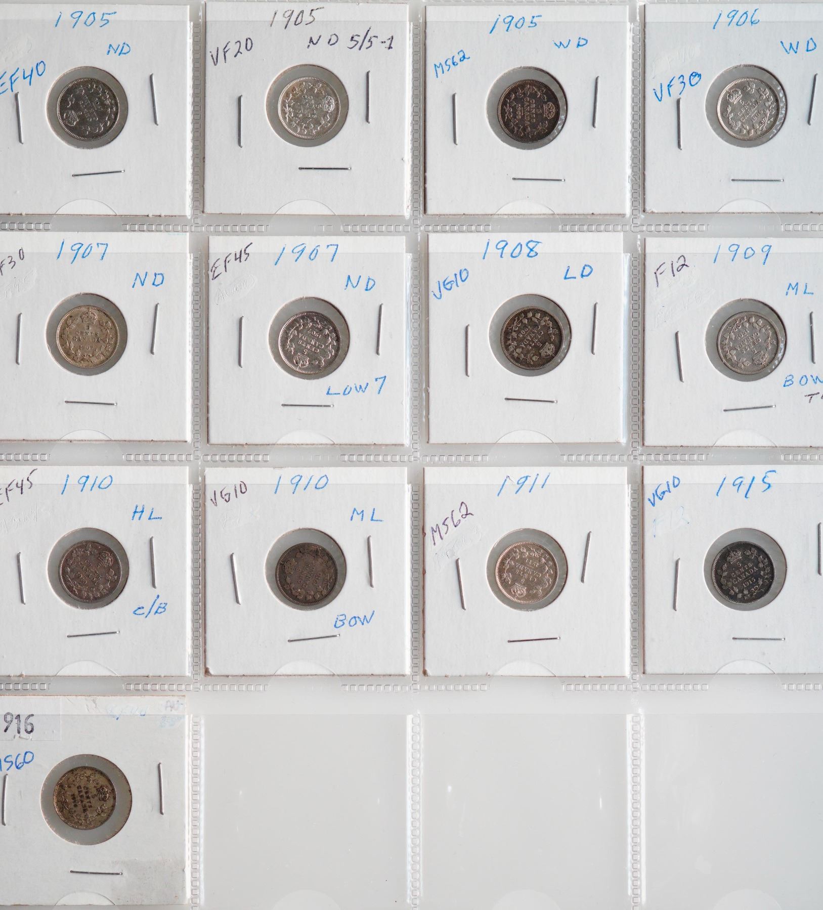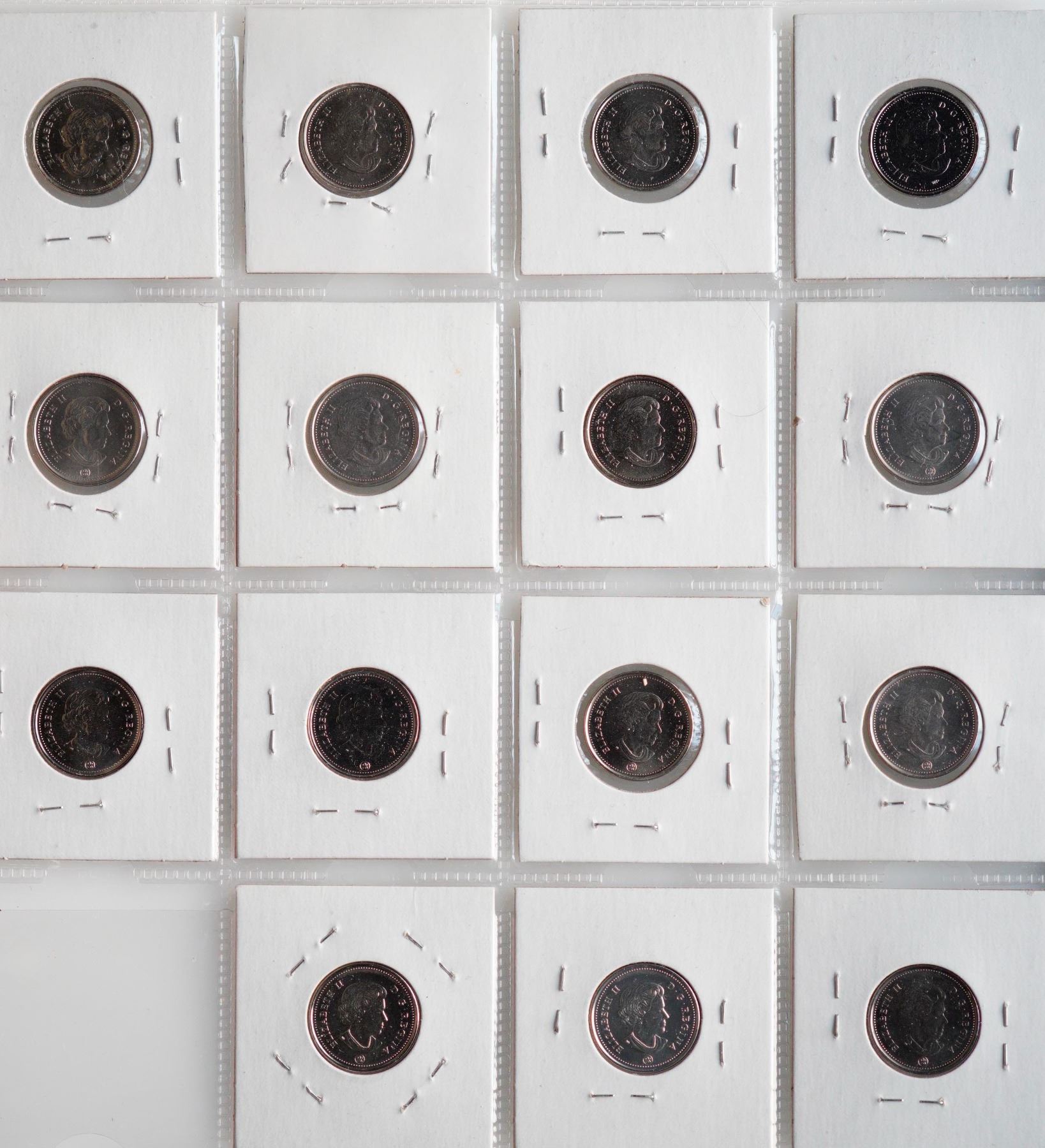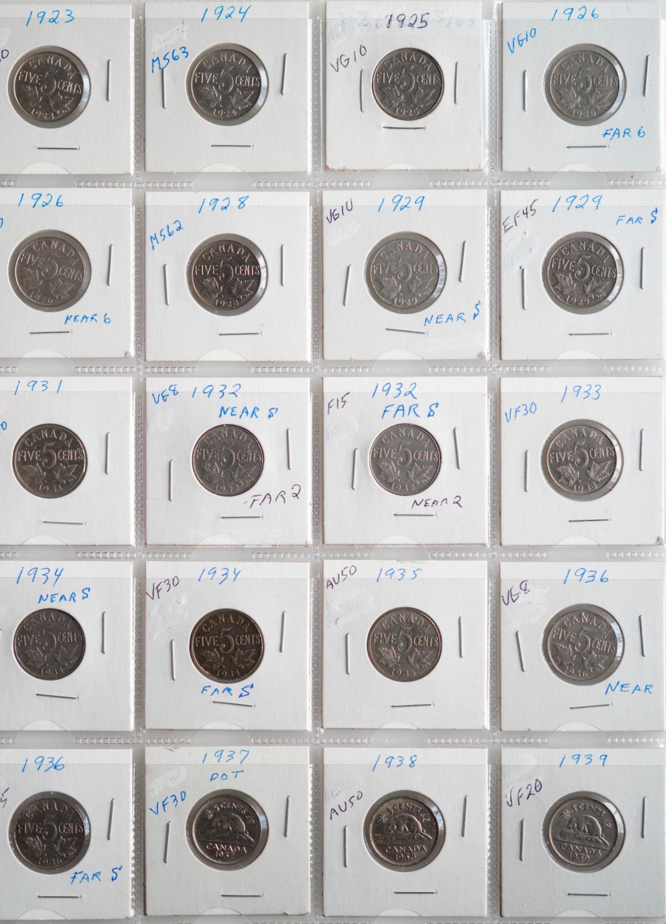 1871 5¢ to 2015 Partial Date Set; includes Victoria 1871, 1872H, 1881H,1882H, 1885, 1886 Lg, 1888, 1889, 1890H, 1892, 1893, 1896, 1897, 1901, Edward VII 1902, 1902H Lg, 1902H Sm, 1903H, 1903, 1904, 1905(3), 1906, 1907, 1908 Sm, 1909, 1910(2), Edward V 1911, 1915, 1916 , 1923 to 1936 (missing only 1930). A nice lot with some lustrous AU to UNC examples but for the most part VG to VF. Also includes 1937 to 2015 (97 pcs) VG to BU.