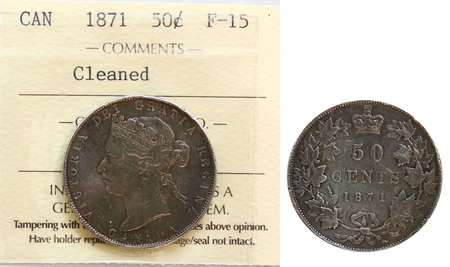 1871 50¢ ICCS Choice Fine-15 Cleaned