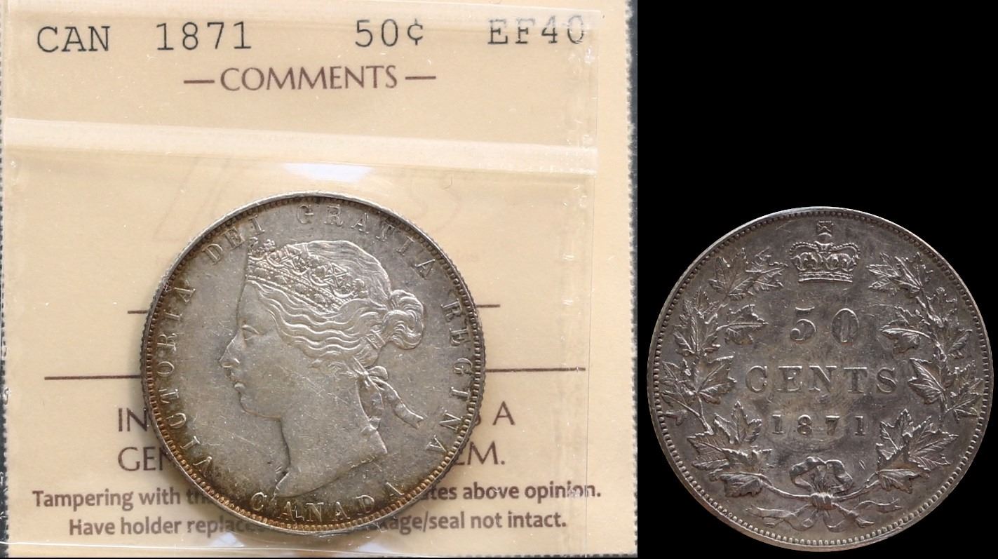 1871 50¢ ICCS Extra Fine-40. A nice example with nice lustre. Seldom offered in this condition.