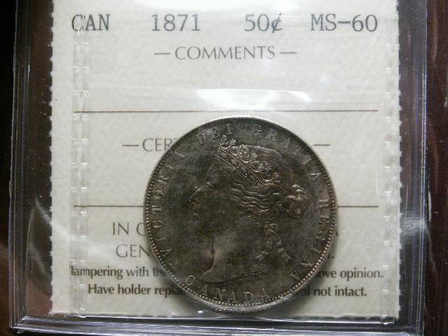 1871 50¢ ICCS MS60PQ. Medium autumn shades over underlying luster. An extremely rare coin in mintstate condition. Don't miss this opportunity!