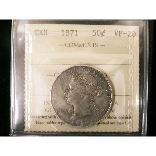 1871 50¢ ICCS VF-20, silver gray tone