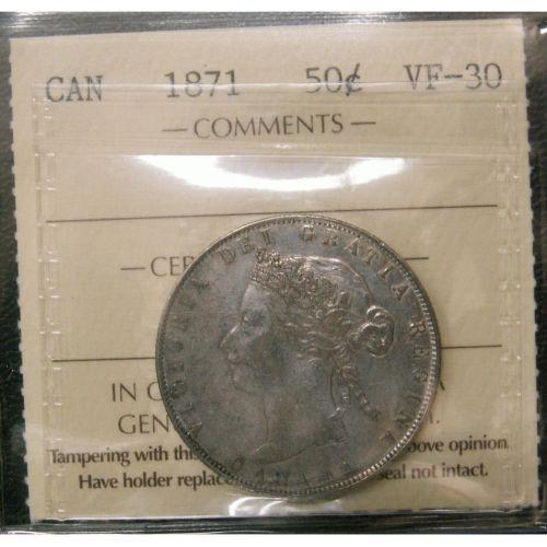 1871 50¢ ICCS VF-30 A nice example with problem free.