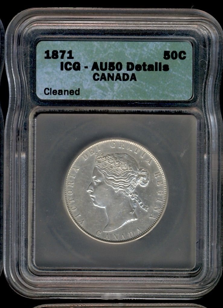 1871 50¢ ICG AU50 Details. Designated as cleaned.