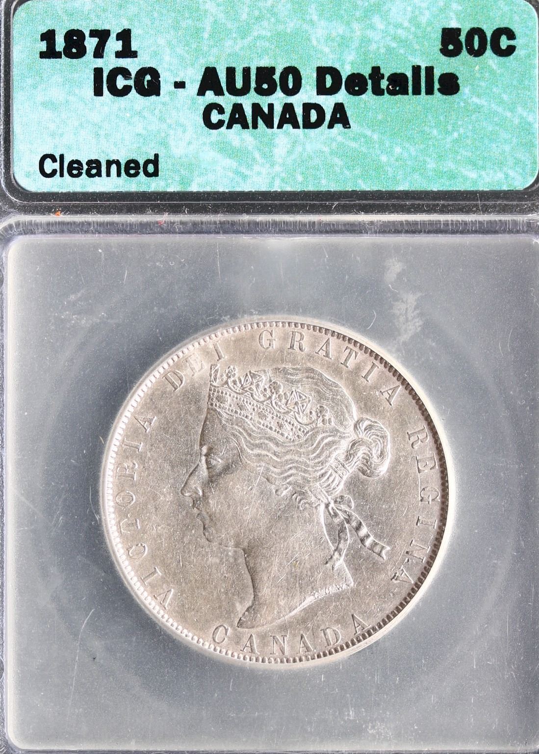 1871 50¢ ICG About Uncirculated-50 Details.  Designated as cleaned.  Sharp details.