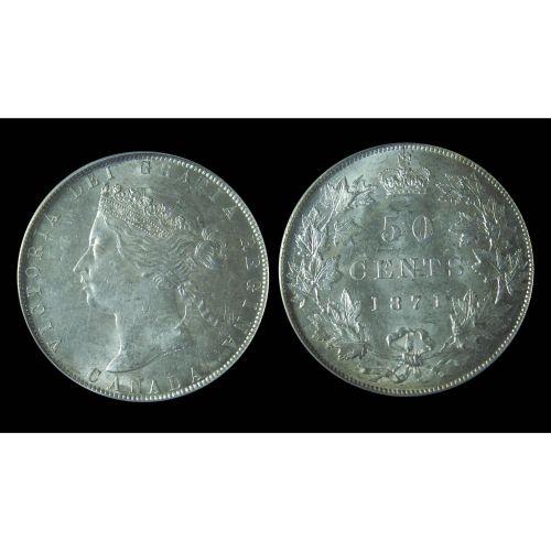 1871 50¢ PCGS MS63, intense autumn shades over full underlying luster. Excessively rare in this condition.