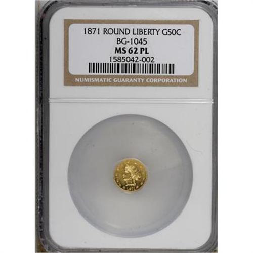 <B>1871 50C BG-1045 Prooflike MS62 NGC.</B></I> NGC Census: (0/0). PCGS Population (0/0). (#710874)<BR><BR><b>Shipping:</b> Coins & Currency (<a target="_blank" href="http://www.heritageauctions.com/common/shipping.php">view shipping information</a>)