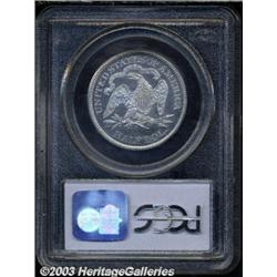 1871 50C Half Dollar, Judd-1116, Pollock-1252, R.8, PR66 Cameo PCGS. Longacre's Indian Princess design, which was presumably executed by William Barber since Longacre died in 1869. Liberty is seated facing left. She holds a Liberty pole with one hand while the other hand rests upon a globe inscribed LIBERTY. Two flags rise behind her, one of which bears 13 stars. The obverse border also has 13 stars. The reverse is from regular issue dies. Struck in aluminum with a reeded edge. An exceptionally sharp and gorgeously preserved example of this desirable pattern. Listed as R-8 in the new Judd edition, with no auction appearances listed in Pollock's reference other than the three prior Bowers and Ruddy sales of this very coin. Tiny planchet flaws (as made) on the right upright of the A in HALF and above the F in HALF provide pedigree markers. This is not only the finest third party graded Judd-1116, it is the only example that has been encapsulated by either major service.Ex: Michael Steig Collection (Bowers and Ruddy, 9/1982), lot 1806, which realized $1,760; earlier, William R. Sieck Collection (Bowers and Ruddy, 7/1981), lot 223, which realized $2,400; William Mitkoff collection; Armand Champa (Bowers and Ruddy, 5/1972), lot 1055.From the Frank O. Fredericks Collection, Part III. Important notice: Heritage usually auctions material at the rate of 200-250 lots per hour. On some occasions eBay Live bid software or the Internet may not be able to keep up with the pace of the auction. We recommend placing a realistic absentee bid now as insurance to avoid disappointment. Occasionally the auctioneer may eliminate or reject an eBay Live bid, and the auctioneer may also reopen a lot after the close of the eBay live bidding (usually because we missed an audience bid), and may reject your bid even if it shows you as the winning bidder. By bidding via eBay Live, you agree that Heritage may award the lot to another bidder at its sole discretion under the circumstances described above or any other reasonable circumstances. Also please note that all Heritage lots purchased through eBay Live carry a 20% Buyer's Premium. Please make sure you read the Terms and Conditions before you bid.
