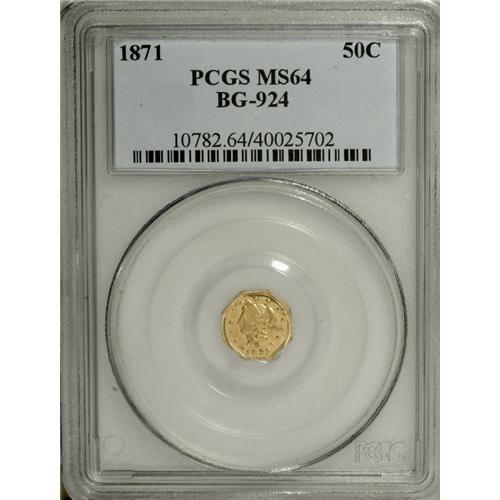 1871 50C Liberty Octagonal 50 Cents, BG-924, R.3, MS64