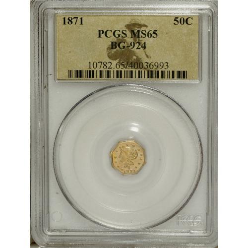 1871 50C Liberty Octagonal 50 Cents, BG-924, R.3, MS65