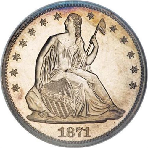 <B>1871 50C PR66 NGC.</B></I> A Premium Gem proof, this impressive half dollar is deeply mirrored with lightly frosted devices. The bright surfaces exhibit light heather, gold, and blue toning over both sides, but is concentrated more heavily near the borders. Fully struck, as expected. Census: 5 in 66, 2 finer (1/08).<BR><BR><B>Coin Engraver:</B> Christian Gobrecht<BR><BR><b>Shipping:</b> Coins & Currency (<a target="_blank" href="http://www.heritageauctions.com/common/shipping.php">view shipping information</a>)