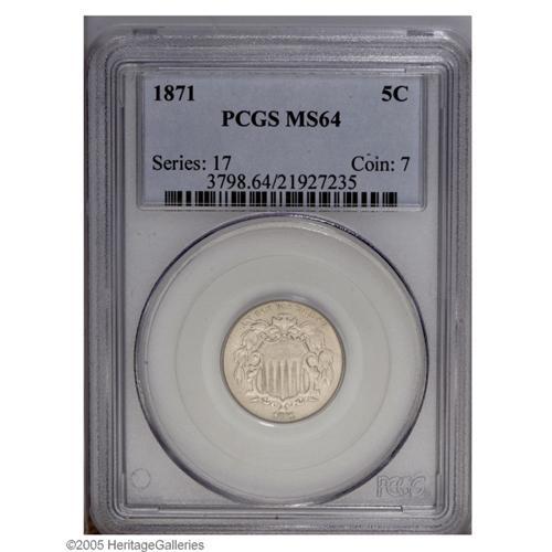 1871 5C MS64 PCGS. The low mintage 1871 (561,000 piece 1871[5C] MS64 PCGS.