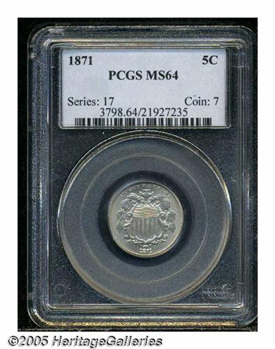 1871 5C MS64 PCGS. The low mintage 1871 (561,000