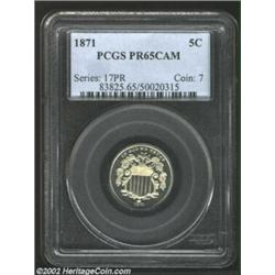 1871 5C PR65 Cameo PCGS. The Philadelphia Mint used at least three die pairs for the proof 1871 Shie