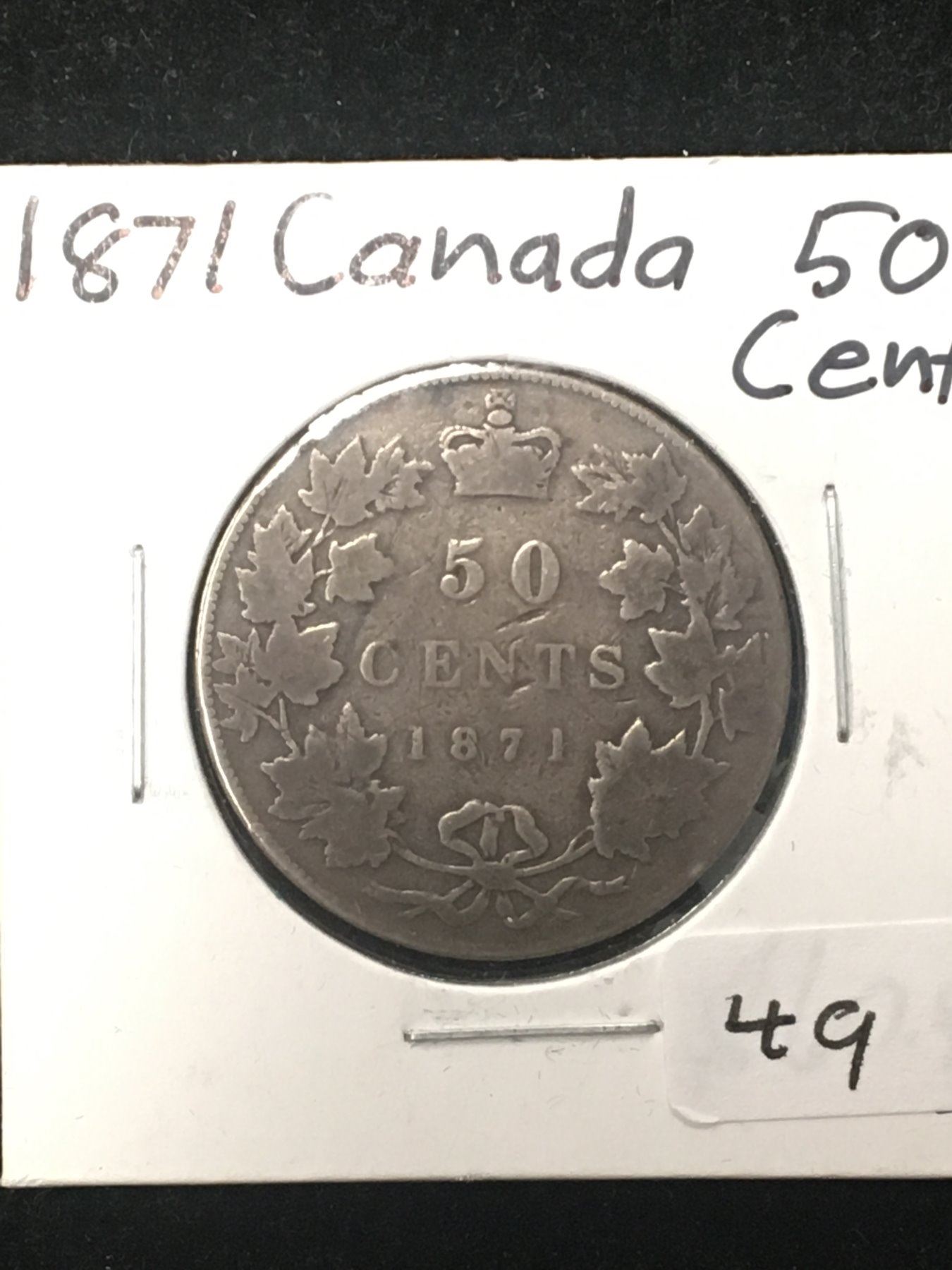 VICTORIA 1871 CANADA 50CENTS! GRADES G-6