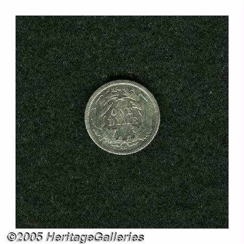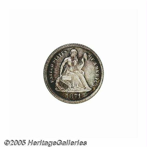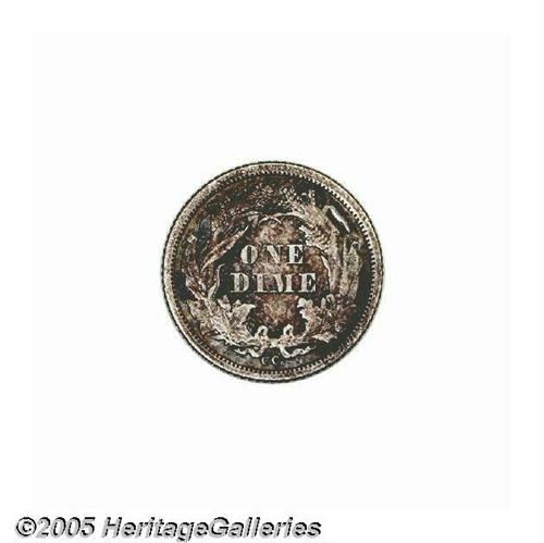 <B>1871-CC<10C> AU50 Repaired, Whizzed, Uncertified.</B></I> The 1871-CC Dime is a significant rarity within the Seated Dime series. The first Dime issue from the western mint, the mintage is recorded as 20,100 pieces, but only a few dozen pieces have been certified in any grade by the combined forces of NGC and PCGS. This charcoal-gray survivor is micro-granular from whizzing. The ICA in AMERICA and the reverse wreath near 3 o'clock have been tooled. The reverse rim has file marks near 3 o'clock. Nonetheless desirable, since only a handful of other 1871-CC Dimes can boast similar sharpness.