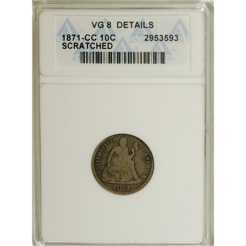 1871-CC 10C --Scratched--ANACS. VG8 Details. A mere 20,