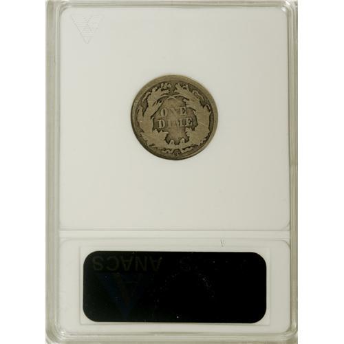 <B>1871-CC 10C --Scratched--ANACS. VG8 Details.</B></I> A mere 20,100 pieces were struck for this introductory Carson City dime issue. Five letters in LIBERTY are clear, and the piece is attractive except for a lengthy thin mark from the U in UNITED to Liberty's raised hand.<BR><BR><b>Shipping:</b> Coins & Currency (<a target="_blank" href="http://www.heritageauctions.com/common/shipping.php">view shipping information</a>)