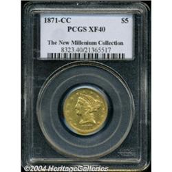 <table><tbody><tr><td><table> <TR><TD width="100%"><TABLE cellSpacing=1 cellPadding=3 width="100%" border=0><TBODY><TR><TD width="100%" bgColor=#79735c><FONT face=arial color=#ffffff size=3><B>Description</B> </FONT></TD></TR><TR><TD width="100%" bgColor=#ffffff><FONT face=arial size=2><B>1871-CC $5 XF40 PCGS.</B></I> The 1871-CC is a challenging Carson City Half Eagle, but not quite as difficult as the other Half Eagles from this mint struck from 1870 through 1873. Most survivors are at least moderately circulated. This pleasing representative shows expected softness beyond wear in the centers and hints of reddish patina peripherally. Population: 7 in 40, 17 finer (10/03).<BR><I>From The New Millennium Collection, Part 3.</B></I> </FONT></TD></TR></TBODY></TABLE></TD></TR></TBODY></TABLE><BR><A name=PricesRealized></A><TABLE cellSpacing=0 cellPadding=0 width="100%" bgColor=#000000 border=0><TBODY><TR><TD width="100%"><TABLE cellSpacing=1 cellPadding=3 width="100%" border=0><TBODY><TR><TD width="100%" bgColor=#79735c><A name=PR><FONT face=arial color=#ffffff size=3><B>Previous Prices from Heritage Auctions</B> </FONT></A></TD></TR><TR><TD bgColor=#f6f6ed><TABLE cellSpacing=0 cellPadding=0 width="100%" border=1><TBODY><TR><TD align=middle width="33%"><B>Date</B></TD><TD align=middle width="33%"><B>Service</B></TD><TD align=middle width="33%"><B>Price</B></TD></TR><TR bgColor=whitesmoke><TD width="33%"><B>01/08/1999</B></TD><TD width="33%">NGC</TD><TD width="33%">$2,415.00</TD></TR><TR bgColor=whitesmoke><TD width="33%"><B>04/30/1993</B></TD><TD width="33%">ANACS</TD><TD width="33%">$1,430.00</TD></TR><TR bgColor=whitesmoke><TD width="33%"><B>03/01/2000</B></TD><TD width="33%">PCGS</TD><TD width="33%">$5,750.00</TD></TR></TBODY></TABLE></TD></TR><TR><TD bgColor=#ffffff><FONT face=arial size=1 ?>PLEASE NOTE: All prices realized reflect the final hammer price PLUS the buyer's premium in auctions that charge a buyer's premium. Each item has a notation at the top of the listing indicating whether that lot included a buyer's premium. Example: A item that sells with a final hammer price of $100 and a 20% buyer's premium will display with a price realized of $120. All information listed is intended to be as accurate as possible, but errors are possible. Please use this guide carefully and inform us of any inaccuracies. </FONT></TD></TR></TBODY></TABLE></TD></TR></TBODY></TABLE><BR><TABLE cellSpacing=0 cellPadding=0 width="100%" bgColor=#000000 border=0><TBODY><TR><TD width="100%"><TABLE cellSpacing=1 cellPadding=3 width="100%" border=0><TBODY><TR><TD width="100%" bgColor=#79735c colSpan=6><FONT face=arial color=#ffffff size=3><B>Price Guide*</B> </FONT></TD></TR><TR bgColor=#f6f6ed><TD align=middle><B>Grade</B> </TD><TD align=middle><B>Coin World<BR>(Trends)</B> </TD><TD align=middle><B>Numismedia<BR>Retail</B> </TD><TD align=middle><B>Numismedia<BR>Wholesale</B> </TD><TD align=middle><B>Coin<BR>Universe</B> </TD><TD align=middle><B>Heritage<BR>Value Index</B> </TD></TR><TR bgColor=#ffffff><TD align=middle>35</TD><TD align=right>---</TD><TD align=right>---</TD><TD align=right>---</TD><TD align=right>---</TD><TD align=right>$1,828.67</TD></TR><TR style="FONT-WEIGHT: bold" bgColor=#cccfdd><TD align=middle>40</TD><TD align=right>$3,500.00</TD><TD align=right>---</TD><TD align=right>$2,645.00</TD><TD align=right>$3,375.00</TD><TD align=right>$2,324.17</TD></TR><TR bgColor=#ffffff><TD align=middle>45</TD><TD align=right>$8,850.00</TD><TD align=right>---</TD><TD align=right>---</TD><TD align=right>---</TD><TD align=right>$5,620.00</TD></TR><TR bgColor=#ffffff><TD colSpan=6><FONT size=1>*All information listed is intended to be as accurate as possible, but errors are possible. No item may be returned or refused based on this information which is provided as a service to our customers. You should contact each pricing source directly to determine the accuracy of this information. </FONT></TD></TR></TBODY></TABLE></TD></TR></TBODY></TABLE><BR><TABLE cellSpacing=0 cellPadding=0 width="100%" bgColor=#000000 border=0><TBODY><TR><TD width="100%"><TABLE cellSpacing=1 cellPadding=3 width="100%" border=0><TBODY><TR><TD width="100%" bgColor=#79735c><FONT face=arial color=#ffffff size=3><B>Population Guide</B> </FONT></TD></TR><TR bgColor=#ffffff><TD align=middle><!-- Begin Output of Population Grid--><TABLE cellSpacing=0 cellPadding=0 width="100%" border=0><TBODY><TR><TD vAlign=center><TABLE cellSpacing=0 width="100%" border=1 cellsadding="3"><TBODY><TR><TD vAlign=center><TABLE cellSpacing=0 cellPadding=3 width="100%" border=1><TBODY><TR><TD vAlign=center align=middle bgColor=#f0f1e8 colSpan=2 <CENTER><FONT face=Arial size=2><B>PCGS Pop </B></FONT><CENTER></CENTER></TD><TD vAlign=center align=middle bgColor=#f0f1e8 colSpan=2><CENTER><FONT face=Arial size=2><B>NGC Pop</B></CENTER></FONT></TD></TR><TR><TD vAlign=center><FONT face=Arial size=2>(40)</FONT> </TD><TD vAlign=center align=right><FONT face=Arial size=2>7</FONT> </TD><TD vAlign=center><FONT face=Arial size=2>(40)</FONT> </TD><TD vAlign=center align=right><FONT face=Arial size=2>10</FONT> </TD></TR><TR><TD vAlign=center><FONT face=Arial size=2>(>40)</FONT> </TD><TD vAlign=center align=right><FONT face=Arial size=2>17</FONT> </TD><TD vAlign=center><FONT face=Arial size=2>(>40)</FONT> </TD><TD vAlign=center align=right><FONT face=Arial size=2>36</FONT> </TD></TR></TBODY></TABLE></TD></TR></TBODY></TABLE></TD></TR></TBODY></TABLE><!-- End Output of Population Grid--></TD></TR></TBODY></TABLE></TD></TR></TBODY></TABLE><BR><TABLE cellSpacing=0 cellPadding=0 width="100%" bgColor=#000000 border=0><TBODY><TR> <font color='#000000'><span style='background-color: #FFFFFF'><td bgcolor='#FFFFFE'> Important notice: Heritage usually auctions material at the rate of 200-250 lots per hour. On some occasions eBay Live bid software or the Internet may not be able to keep up with the pace of the auction. We recommend placing a realistic absentee bid now as insurance to avoid d