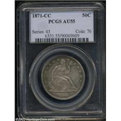 <table><tr><td><TABLE cellSpacing=0 cellPadding=0 width="100%" bgColor=#000000 border=0><TBODY> <TR><TD width="100%"><TABLE cellSpacing=1 cellPadding=3 width="100%" border=0><TBODY><TR><TD width="100%" bgColor=#79735c><FONT face=arial color=#ffffff size=3><B>Description</B> </FONT></TD></TR><TR><TD width="100%" bgColor=#ffffff><FONT face=arial size=2><B>1871-CC 50C AU55 PCGS.</B></I> The second year of Carson City half dollar production and an even more difficult issue than its mintage of 159,950 pieces would suggest, especially in lesser worn grades. The surfaces are moderately toned with even amounts of golden-gray color, some underlying luster is still visible. There are no singularly mentionable marks or other distractions. This is a rare issue in all grades and it becomes quite challenging in About Uncirculated. </FONT></TD></TR></TBODY></TABLE></TD></TR></TBODY></TABLE><BR><A name=PricesRealized></A><TABLE cellSpacing=0 cellPadding=0 width="100%" bgColor=#000000 border=0><TBODY><TR><TD width="100%"><TABLE cellSpacing=1 cellPadding=3 width="100%" border=0><TBODY><TR><TD width="100%" bgColor=#79735c><A name=PR><FONT face=arial color=#ffffff size=3><B>Previous Prices from Heritage Auctions</B> </FONT></A></TD></TR><TR><TD bgColor=#f6f6ed><TABLE cellSpacing=0 cellPadding=0 width="100%" border=1><TBODY><TR><TD align=middle width="33%"><B>Date</B></TD><TD align=middle width="33%"><B>Service</B></TD><TD align=middle width="33%"><B>Price</B></TD></TR><TR bgColor=whitesmoke><TD width="33%"><B>05/01/2001</B></TD><TD width="33%">PCGS</TD><TD width="33%">$14,300.00</TD></TR></TBODY></TABLE></TD></TR><TR><TD bgColor=#ffffff><FONT face=arial size=1 ?>PLEASE NOTE: All prices realized reflect the final hammer price PLUS the buyer's premium in auctions that charge a buyer's premium. Each item has a notation at the top of the listing indicating whether that lot included a buyer's premium. Example: A item that sells with a final hammer price of $100 and a 20% buyer's premium will display with a price realized of $120. All information listed is intended to be as accurate as possible, but errors are possible. Please use this guide carefully and inform us of any inaccuracies. </FONT></TD></TR></TBODY></TABLE></TD></TR></TBODY></TABLE><BR><TABLE cellSpacing=0 cellPadding=0 width="100%" bgColor=#000000 border=0><TBODY><TR><TD width="100%"><TABLE cellSpacing=1 cellPadding=3 width="100%" border=0><TBODY><TR><TD width="100%" bgColor=#79735c colSpan=6><FONT face=arial color=#ffffff size=3><B>Price Guide*</B> </FONT></TD></TR><TR bgColor=#f6f6ed><TD align=middle><B>Grade</B> </TD><TD align=middle><B>Coin World<BR>(Trends)</B> </TD><TD align=middle><B>Numismedia<BR>Retail</B> </TD><TD align=middle><B>Numismedia<BR>Wholesale</B> </TD><TD align=middle><B>Coin<BR>Universe</B> </TD><TD align=middle><B>Heritage<BR>Value Index</B> </TD></TR><TR bgColor=#ffffff><TD align=middle>53</TD><TD align=right>---</TD><TD align=right>---</TD><TD align=right>$3,325.00</TD><TD align=right>---</TD><TD align=right>$2,797.86</TD></TR><TR style="FONT-WEIGHT: bold" bgColor=#cccfdd><TD align=middle>55</TD><TD align=right>---</TD><TD align=right>---</TD><TD align=right>---</TD><TD align=right>$2,600.00</TD><TD align=right>$3,362.92</TD></TR><TR bgColor=#ffffff><TD align=middle>58</TD><TD align=right>$7,500.00</TD><TD align=right>---</TD><TD align=right>$8,340.00</TD><TD align=right>---</TD><TD align=right>$5,302.50</TD></TR><TR bgColor=#ffffff><TD colSpan=6><FONT size=1>*All information listed is intended to be as accurate as possible, but errors are possible. No item may be returned or refused based on this information which is provided as a service to our customers. You should contact each pricing source directly to determine the accuracy of this information. </FONT></TD></TR></TBODY></TABLE></TD></TR></TBODY></TABLE><BR><TABLE cellSpacing=0 cellPadding=0 width="100%" bgColor=#000000 border=0><TBODY><TR><TD width="100%"><TABLE cellSpacing=1 cellPadding=3 width="100%" border=0><TBODY><TR><TD width="100%" bgColor=#79735c><FONT face=arial color=#ffffff size=3><B>Population Guide</B> </FONT></TD></TR><TR bgColor=#ffffff><TD align=middle><!-- Begin Output of Population Grid--><TABLE cellSpacing=0 cellPadding=0 width="100%" border=0><TBODY><TR><TD vAlign=center><TABLE cellSpacing=0 width="100%" border=1 cellsadding="3"><TBODY><TR><TD vAlign=center><TABLE cellSpacing=0 cellPadding=3 width="100%" border=1><TBODY><TR><TD vAlign=center align=middle bgColor=#f0f1e8 colSpan=2 <CENTER><FONT face=Arial size=2><B>PCGS Pop </B></FONT><CENTER></CENTER></TD><TD vAlign=center align=middle bgColor=#f0f1e8 colSpan=2><CENTER><FONT face=Arial size=2><B>NGC Pop</B></CENTER></FONT></TD></TR><TR><TD vAlign=center><FONT face=Arial size=2>(55)</FONT> </TD><TD vAlign=center align=right><FONT face=Arial size=2>3</FONT> </TD><TD vAlign=center><FONT face=Arial size=2>(55)</FONT> </TD><TD vAlign=center align=right><FONT face=Arial size=2>0</FONT> </TD></TR><TR><TD vAlign=center><FONT face=Arial size=2>(>55)</FONT> </TD><TD vAlign=center align=right><FONT face=Arial size=2>8</FONT> </TD><TD vAlign=center><FONT face=Arial size=2>(>55)</FONT> </TD><TD vAlign=center align=right><FONT face=Arial size=2>2</FONT> </TD></TR></TBODY></TABLE></TD></TR></TBODY></TABLE></TD></TR></TBODY></TABLE><!-- End Output of Population Grid--></TD></TR></TBODY></TABLE></TD></TR></TBODY></TABLE><BR><TABLE cellSpacing=0 cellPadding=0 width="100%" bgColor=#000000 border=0><TBODY><TR> Important notice: Heritage usually auctions material at the rate of 200-250 lots per hour. On some occasions eBay Live bid software or the Internet may not be able to keep up with the pace of the auction. We recommend placing a realistic absentee bid now as insurance to avoid disappointment. Occasionally the auctioneer may eliminate or reject an eBay Live bid, and the auctioneer may also reopen a lot after the close of the eBay live bidding (usually because we missed an audience bid), and may reject your bid even 