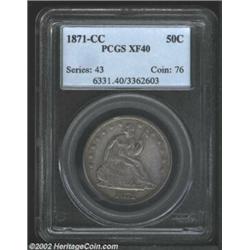 1871-CC 50C XF40 PCGS. A sharply detailed coin whose lavender patina is curiously lighter in the obv