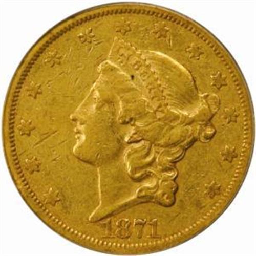 <style type="text/css"> body, td, th { font-family: Arial, Helvetica, sans-serif; font-size: 12px; color: #482424; margin: 0px; padding: 0px; } #header { background-image: url(http://www.bowersandmerena.com/ebay/images/template_v3_01.gif); clear: both; background-color: #590303; border-top-width: 2px; border-top-style: solid; border-top-color: #B38C4F;}#header #header_wrapper { height: 75px; clear: both; width: 800px; margin-right: auto; margin-left: auto; background-image: url(http://www.bowersandmerena.com/ebay/images/template_v3_03.gif); background-repeat: no-repeat; background-position: right; color: #F3EDCC;}#header #header_wrapper #header_logo { float: left; height: 75px; width: 444px; background-image: url(http://www.bowersandmerena.com/ebay/images/template_v3_02.gif); background-repeat: no-repeat; font-size: 10px; text-transform: capitalize; color: #B38C4F;}#header #header_wrapper #header_right { float: left; height: 75px; width: 356px; text-align: right;}#header #header_wrapper #header_right #headerLoginBtn { margin-bottom: 30px;}#header #header_wrapper #header_right input#txtSearch { color: #B49056; border: 1px solid #B49056; width: 175px; padding-top: 3px; padding-right: 3px; padding-bottom: 4px; padding-left: 3px;}#nav { height: 37px; background-image: url(http://www.bowersandmerena.com/ebay/images/template_v3_05.gif); clear: both;}#nav #nav_wrapper { height: 35px; width: 800px; margin-right: auto; margin-left: auto; border-left-width: 1px; border-left-style: solid; border-left-color: #B38C4F;}#nav #nav_wrapper a { padding-right: 15px; padding-left: 15px; border-right-width: 1px; border-right-style: solid; border-right-color: #B38C4F; height: 25px; padding-top: 10px; display: block; float: left; text-decoration: none; font-weight: bold; color: #5D0303;}#nav #nav_wrapper a:hover { color: #B38C4F;}#nav #nav_wrapper #search { float: right; padding-top: 7px;}#nav #nav_wrapper #search #txtSearch { font-family: Arial, Helvetica, sans-serif; font-size: 10px; text-transform: uppercase; color: #D2AE75; border: 1px solid #B38C4F; padding: 3px;}#content_bgd { background-image: url(http://www.bowersandmerena.com/ebay/images/template_v3_09.gif); background-repeat: repeat-y; background-position: center; padding-top: 15px; padding-bottom: 15px; background-color: #FBFBDB;}#content_wrapper { clear: both; height: auto; width: 800px; margin-right: auto; margin-left: auto;}.LotDetailWhite{ line-height:normal; font-size:13px; font-family: arial,helvetica,sans-serif; color: White; font-weight: bold;}.LotDetailInformation{ line-height:normal; font-size: 13px; font-family: arial,helvetica,sans-serif;}.LotDetailMessage{ line-height:normal; font-size: 13px; font-family: arial,helvetica,sans-serif; color: red;}}tr.HeaderAuctionTitle td { color: #000000; font-weight: bold; padding: 2px; background-image: url(http://www.bowersandmerena.com/ebay/images/template_v3_05.gif); background-repeat: repeat-x; border-bottom-width: 1px; border-bottom-style: solid; border-bottom-color: #B38C4F;}table.AuctionSummary a, table.AuctionSummary a:link, table.AuctionSummary a:visited { color: #0000FF; text-decoration: none;}}td.tableHeaderLeft { border-left-width: 1px; border-left-style: solid; border-left-color: #B38C4F;}td.tableHeaderRight { border-right-width: 1px; border-right-style: solid; border-right-color: #B38C4F;}td.tableCellMiddle { border-left-width: 1px; border-left-style: solid; border-left-color: #B38C4F; border-right-width: 1px; border-right-style: solid; border-right-color: #B38C4F; padding: 5px;}tr.footer td { border-top-width: 1px; border-top-style: solid; border-top-color: #B38C4F;}</style></head><body><div id="header"> <div id="header_wrapper"> <div id="header_logo"> </div> <div id="header_right"> </div> </div></div><div id="nav"> <div id="nav_wrapper"> <a href="http://www.bowersandmerena.com">Our eBayLive Auctions</a> <a href="#PaymentInfo">Payment Information</a> <a href="#ShippingInfo">Shipping Information</a> <a href="#About">About Bowers and Merena</a> </div></div><div id="content_bgd"> <div id="content_wrapper"> <table width="100%" border="0" cellpadding="5" cellspacing="0" class="AuctionSummary"> <tbody> <tr class="HeaderAuctionTitle" style="height: 25px;"> <td align="left" class="tableHeaderLeft" > </td> <td align="center" class="tableHeaderRight"> <span style="font-size: large;">Lot #1210. 1871-CC Liberty Double Eagle. Winter 1-A, the only known dies. EF-45 (PCGS).</span> </td> </tr> <tr> <td colspan="3" class="tableCellMiddle"> Rich khaki-gold color blankets both sides and provides a pleasingly original "look" for this lightly circulated Double Eagle. The surfaces are a bit muted, but we stress that this feature is a product of both the issue (satiny, not particularly vibrant luster is the norm) and the amount of wear that the coin has acquired. At direct angles, nonetheless, one can see a modest amount of "flash" from the original mint finish. The reverse is typically bolder in detail for a Type II Double Eagle from the Carson City Mint, but the obverse is sufficiently well defined, and neither side reveals excessive rub. Scattered abrasions include two moderate-size distractions in the left-obverse field.Although the 1871-CC is not in the same category as the 1870-CC, it is still a leading rarity in the CC-mint Double Eagle series. This is actually the second-rarest Twenty from this fabled frontier-era Mint, and Doug Winter and Jim Halperin (2001) account for just 200-250 survivors in all grades.