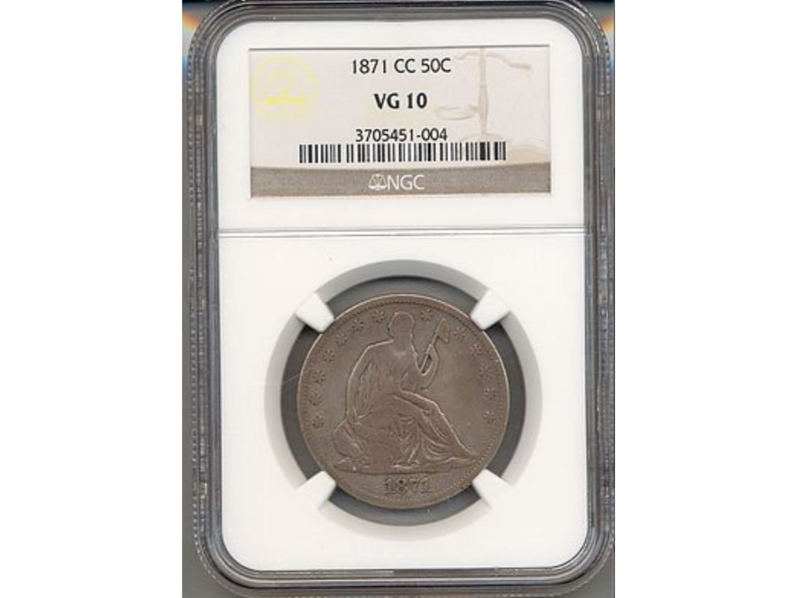 One 1871-CC Liberty Seated Half Dollar Coin NGC VG10.