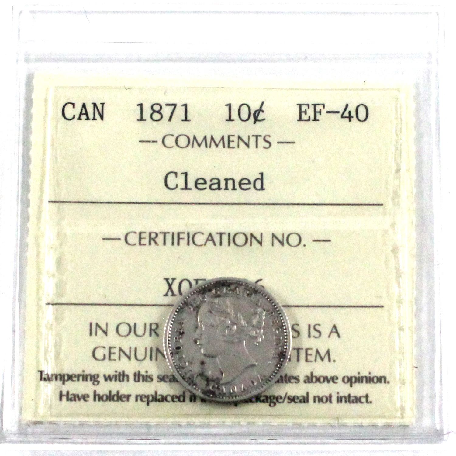 1871 Canada 10-cent ICCS Certified EF-40 (Cleaned).