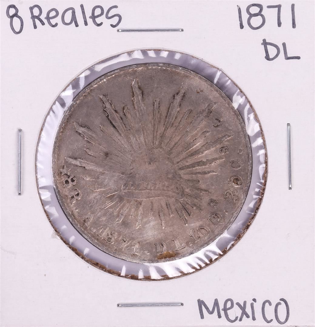 One 1871 DL Mexico 8 Reales Silver Coin Scarce Date.