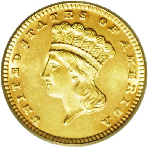 <B>1871<G$1> MS64 PCGS.</B></I> A Philadelphia Mint rarity, one of just 3,900 business strike coins produced. This is a remarkably well-struck example with full obverse and reverse design elements. Satiny surfaces have brilliant yellow luster with traces of pink toning. The grade is limited by a few wispy hairlines and insignificant abrasions. <BR><BR><B>Important notice:</B> Heritage usually auctions material at the rate of 200-250 lots per hour. On some occasions eBay Live bid software or the Internet may not be able to keep up with the pace of the auction. We recommend placing a realistic absentee bid now as insurance to avoid disappointment. Occasionally the auctioneer may eliminate or reject an eBay Live bid, and the auctioneer may also reopen a lot after the close of the eBay live bidding (usually because we missed an audience bid), and may reject your bid even if it shows you as the winning bidder. By bidding via eBay Live, you agree that Heritage may award the lot to another bidder at its sole discretion under the circumstances described above or any other reasonable circumstances. Since eBay bids are not shown to us until we open the lot on the floor, we treat those bids just like floor bids. In most cases the floor responds before the eBay bid is presented to us, due to Internet lag time, so for consistency we have made it a policy that floor bids are always considered first over tie eBay live bids. Also please note that all Heritage lots purchased through eBay Live carry a 20% Buyer's Premium. Please make sure you read the Terms and Conditions before you bid. This lot is being auctioned in conjunction with a live floor auction by Heritage Galleries & Auctioneers. All final auction and invoice information will be supplied by Heritage Galleries & Auctioneers, and all other information should be considered preliminary. Lot:2312 <BR><BR><B>Winning Notification and Billing:</B> After the FINAL session in this auction is complete, Heritage will send e-mail and snail mail invoices. This process normally takes several days. All final auction and invoice information will be supplied by Heritage Galleries & Auctioneers, and all other information should be considered preliminary. <BR><BR>This auction will be conducted on a live auction floor and over the Internet through eBay Live. If you choose to place an absentee bid, please take a moment to <font color='#0000ff'><u><a href='http://pages.ebay.com/liveauctions/help/before/laabsentee.html'>learn how eBay Live absentee bidding works</a></u></font><font color='#000000'>