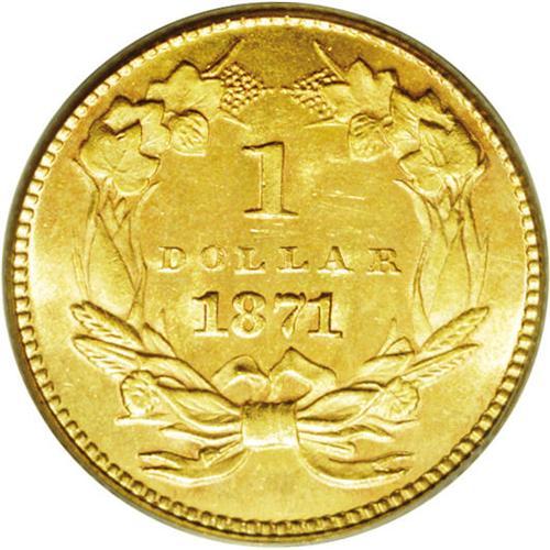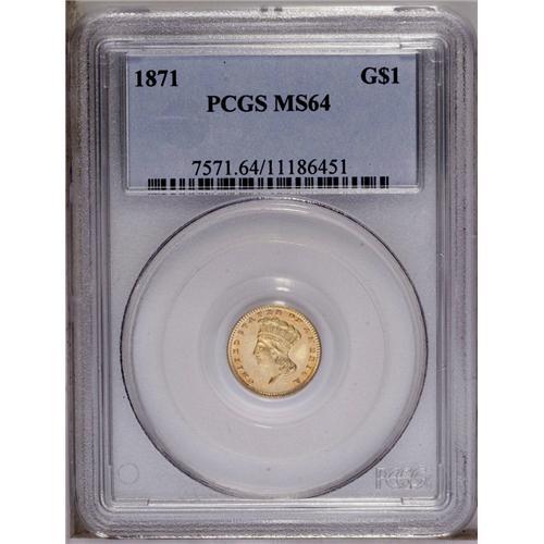 1871 G$1 MS64 PCGS. A Philadelphia Mint rarity, one of