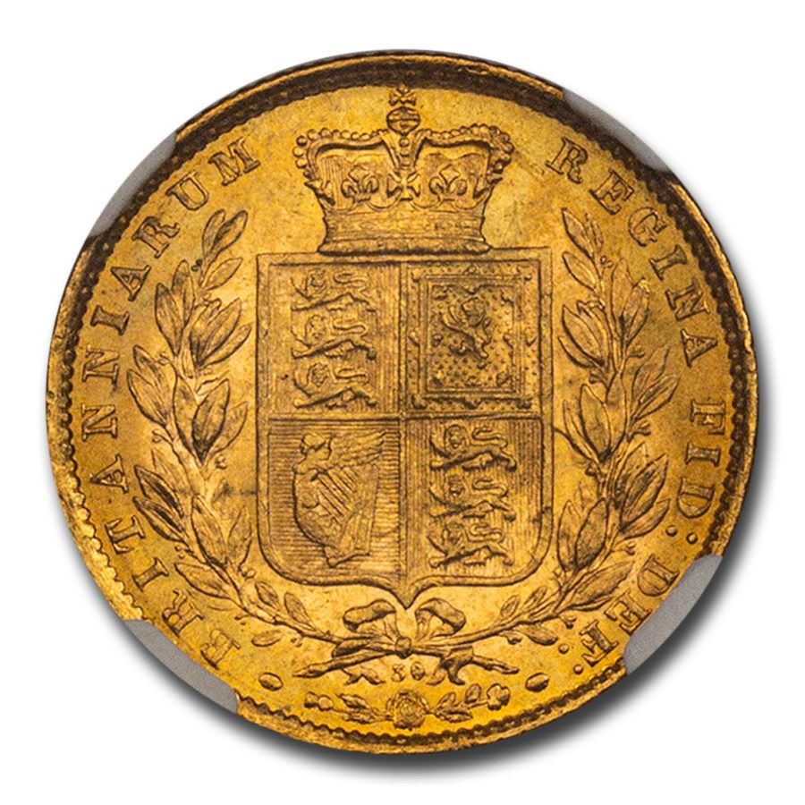 1871 Great Britain Gold Sovereign Victoria Shield MS-64 NGC D30