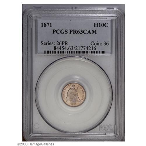 1871 H10C PR63 Cameo PCGS. Deeply mirrored fields offe 1871[H10C] PR63 Cameo PCGS.