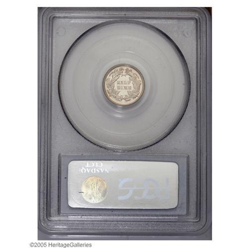 <B>1871<H10C> PR63 Cameo PCGS.</B></I> Deeply mirrored fields offer excellent contrast with the well defined and frosty motifs. The obverse is lightly toned, while the reverse is essentially white. Population: 4 in 63, 14 finer (9/05).