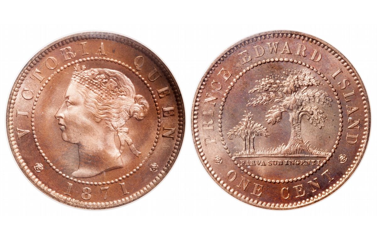 1871. ICCS Mint State-67. Red. A fully brilliant example with 100% yellow-orange luster. Superb and tied for the 'Finest' certified by ICCS.