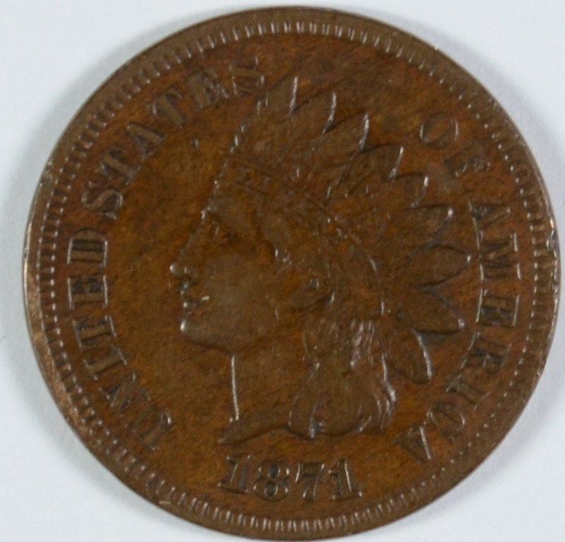 1871 INDIAN HEAD CENT VF OBVERSE, GOOD REVERSE