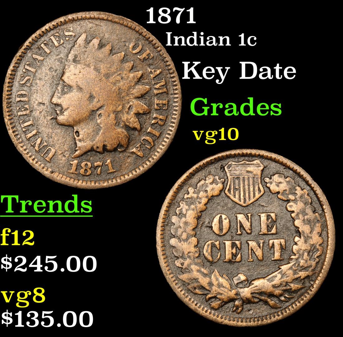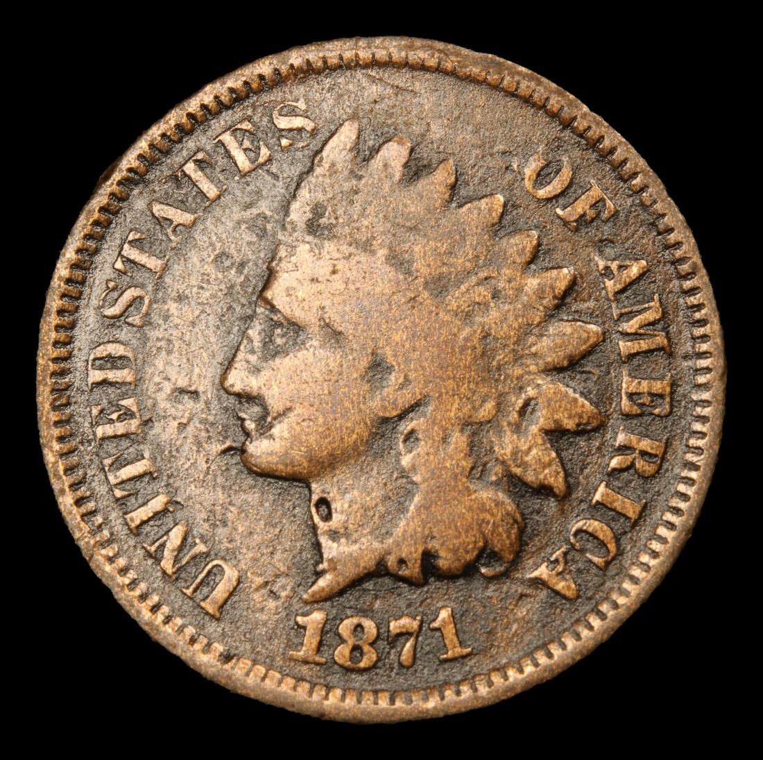 1871 Key Date . Indian Cent 1c Grades vg+.