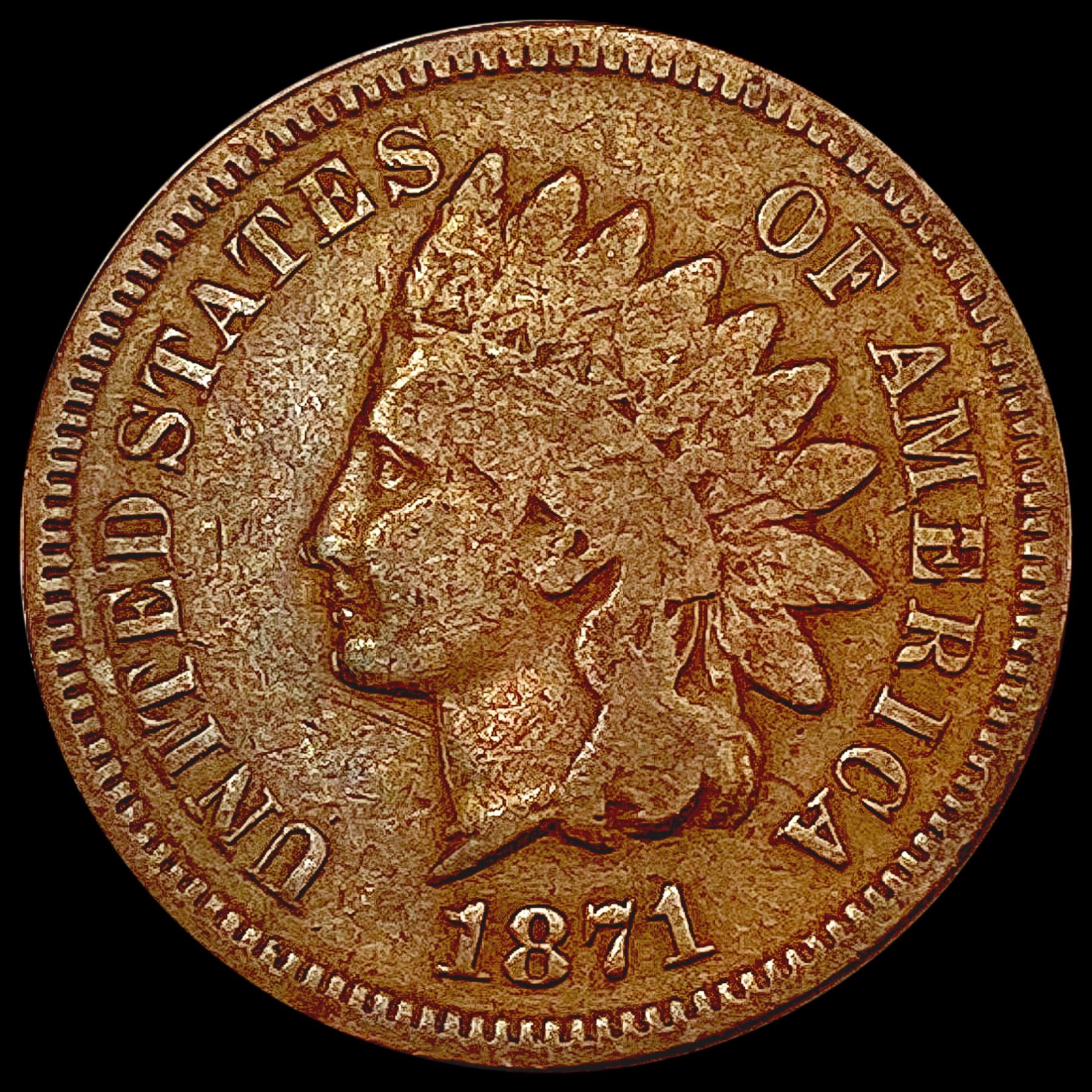 1871 Indian Head Cent ABOUT UNCIRCULATED
