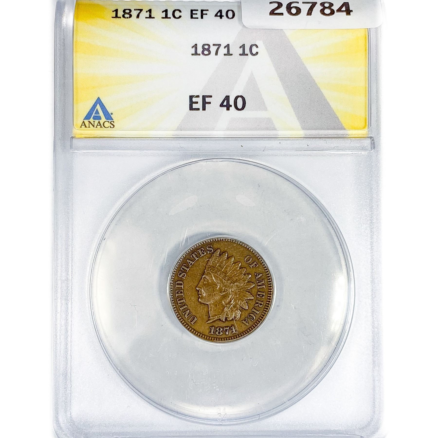 1871 Indian Head Cent ANACS EF40