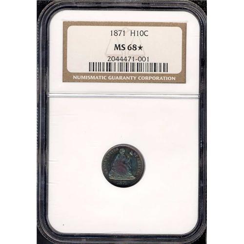 NGC Pop: 1, with none finer! (68 Star). Electric blue and purple with warm amber throughout, and fantastic smooth-grain, vibrant luster surfaces. There are no impairments on either side and the color is outstanding, two of the reasons why it has earned NGC's Star "seal of approval" as a coin with "eye appeal." The pressure transmitted from the die to the blank reveals itself in sharp devices on both sides.