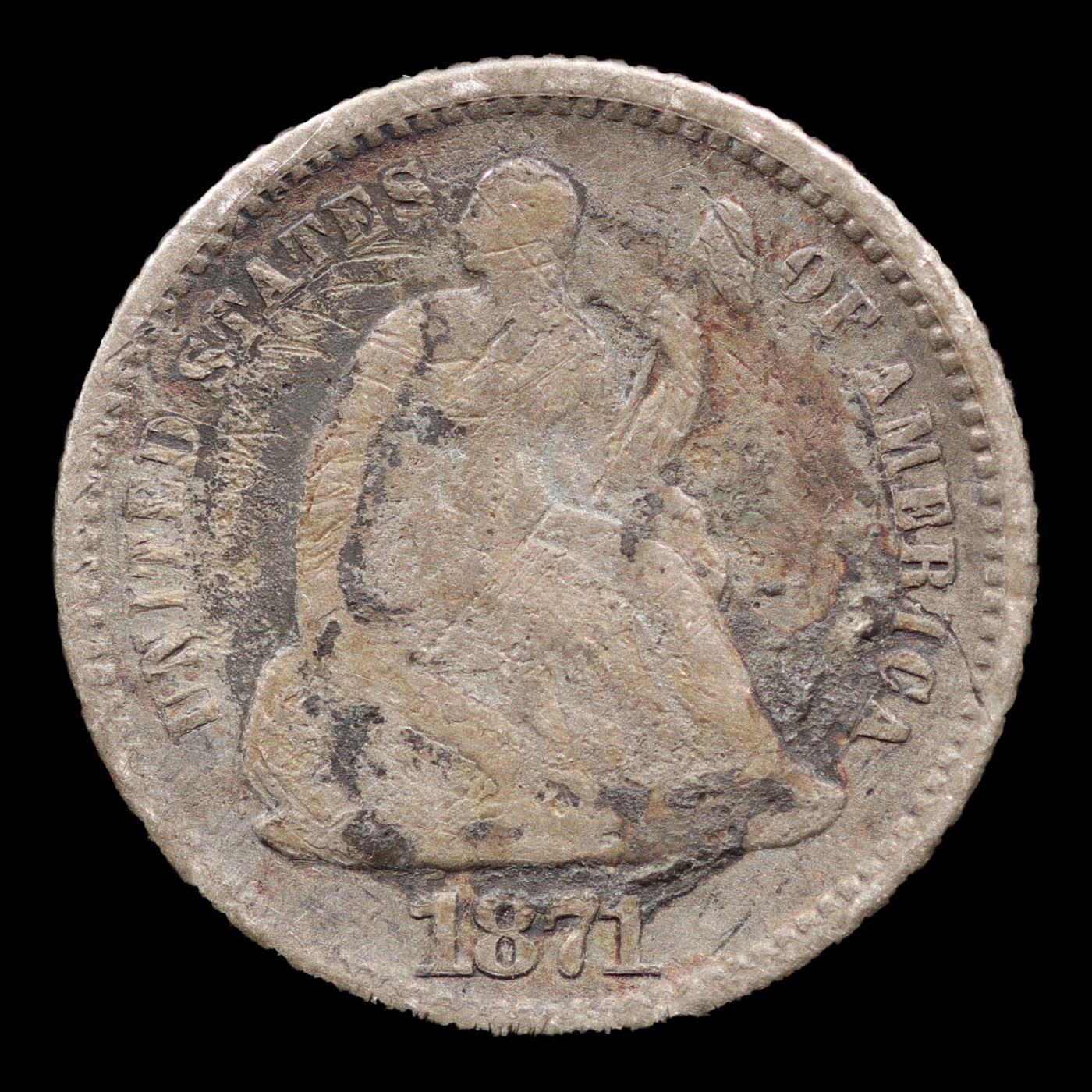 1871 Love Token On Seated Liberty 1/2 10c Seated Liberty Half Dime 1/2 10c Grades ng.
