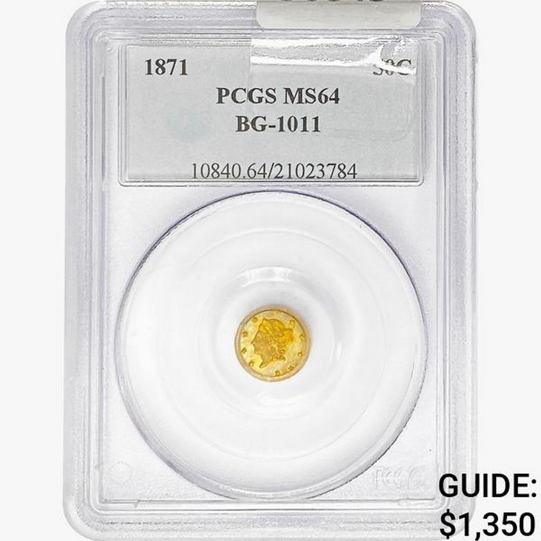 1871 Octagonal California Gold Half Dollar PCGS MS64 BG-1011