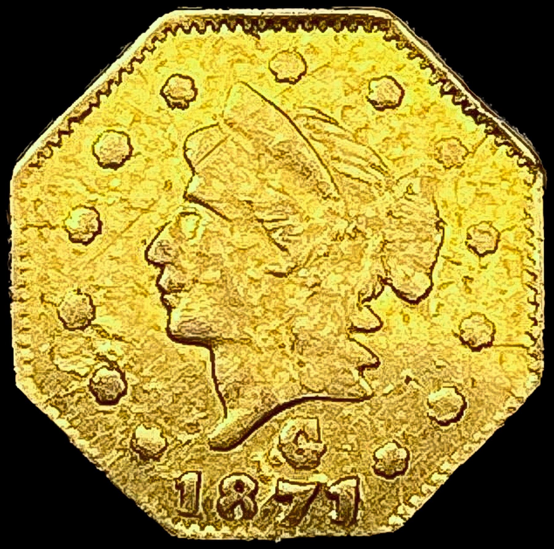 1871 Octagonal California Gold Quarter LIGHTLY CIR