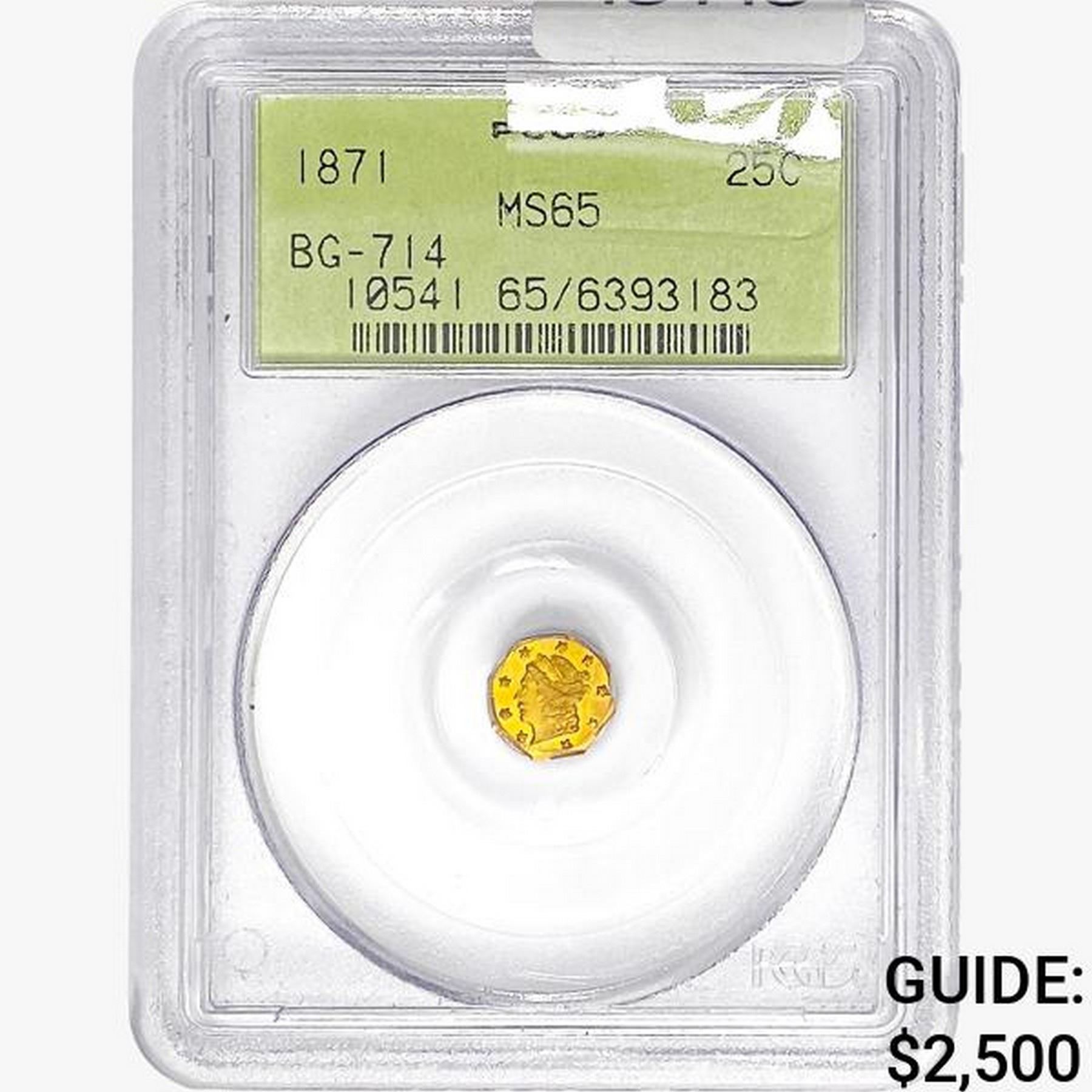 1871 Octagonal California Gold Quarter PCGS MS65 BG-714