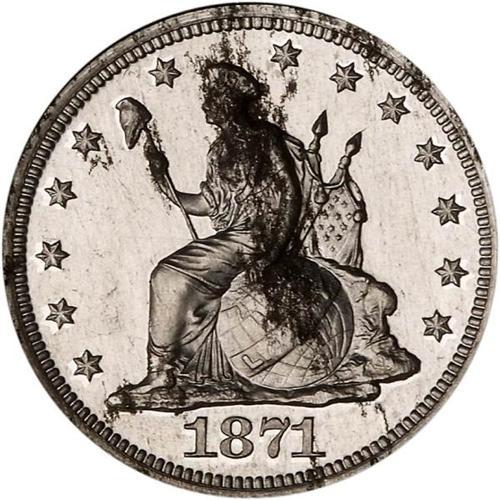 <b>1871 Pattern Dime. Aluminum, reeded edge. Judd-1082. Pollock-1218. NGC graded Proof 63.</b> Indian princess design for a STANDARD coinage, the extremely rare strike in aluminum (Rarity-7 in Judd, with only 4 to 12 believed to be extant). A glittering choice Proof with some light hairlines and swirls in the mirror surface. Aluminum (or as the English prefer to spell it, aluminium) was an expensive metal in 1871. Its use on Pattern coinage was an obvious choice since, being relatively soft, it took a nice sharp impression from the dies. This lovely Judd-1082 piece displays every detail down to the smallest feature <b>(PCGS # 61341)</b>