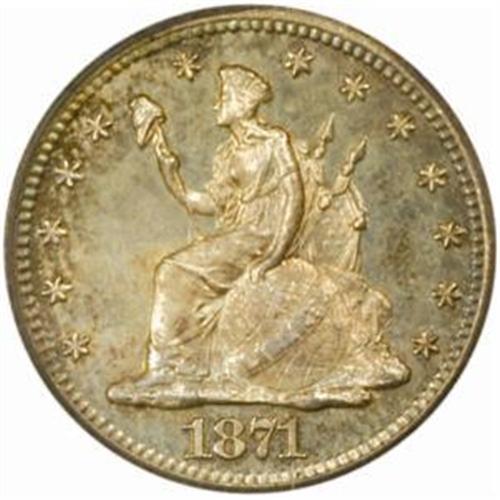 <style type="text/css"> body, td, th { font-family: Arial, Helvetica, sans-serif; font-size: 12px; color: #482424; margin: 0px; padding: 0px; } #header { background-image: url(http://www.bowersandmerena.com/ebay/images/template_v3_01.gif); clear: both; background-color: #590303; border-top-width: 2px; border-top-style: solid; border-top-color: #B38C4F;}#header #header_wrapper { height: 75px; clear: both; width: 800px; margin-right: auto; margin-left: auto; background-image: url(http://www.bowersandmerena.com/ebay/images/template_v3_03.gif); background-repeat: no-repeat; background-position: right; color: #F3EDCC;}#header #header_wrapper #header_logo { float: left; height: 75px; width: 444px; background-image: url(http://www.bowersandmerena.com/ebay/images/template_v3_02.gif); background-repeat: no-repeat; font-size: 10px; text-transform: capitalize; color: #B38C4F;}#header #header_wrapper #header_right { float: left; height: 75px; width: 356px; text-align: right;}#header #header_wrapper #header_right #headerLoginBtn { margin-bottom: 30px;}#header #header_wrapper #header_right input#txtSearch { color: #B49056; border: 1px solid #B49056; width: 175px; padding-top: 3px; padding-right: 3px; padding-bottom: 4px; padding-left: 3px;}#nav { height: 37px; background-image: url(http://www.bowersandmerena.com/ebay/images/template_v3_05.gif); clear: both;}#nav #nav_wrapper { height: 35px; width: 800px; margin-right: auto; margin-left: auto; border-left-width: 1px; border-left-style: solid; border-left-color: #B38C4F;}#nav #nav_wrapper a { padding-right: 15px; padding-left: 15px; border-right-width: 1px; border-right-style: solid; border-right-color: #B38C4F; height: 25px; padding-top: 10px; display: block; float: left; text-decoration: none; font-weight: bold; color: #5D0303;}#nav #nav_wrapper a:hover { color: #B38C4F;}#nav #nav_wrapper #search { float: right; padding-top: 7px;}#nav #nav_wrapper #search #txtSearch { font-family: Arial, Helvetica, sans-serif; font-size: 10px; text-transform: uppercase; color: #D2AE75; border: 1px solid #B38C4F; padding: 3px;}#content_bgd { background-image: url(http://www.bowersandmerena.com/ebay/images/template_v3_09.gif); background-repeat: repeat-y; background-position: center; padding-top: 15px; padding-bottom: 15px; background-color: #FBFBDB;}#content_wrapper { clear: both; height: auto; width: 800px; margin-right: auto; margin-left: auto;}.LotDetailWhite{ line-height:normal; font-size:13px; font-family: arial,helvetica,sans-serif; color: White; font-weight: bold;}.LotDetailInformation{ line-height:normal; font-size: 13px; font-family: arial,helvetica,sans-serif;}.LotDetailMessage{ line-height:normal; font-size: 13px; font-family: arial,helvetica,sans-serif; color: red;}}tr.HeaderAuctionTitle td { color: #000000; font-weight: bold; padding: 2px; background-image: url(http://www.bowersandmerena.com/ebay/images/template_v3_05.gif); background-repeat: repeat-x; border-bottom-width: 1px; border-bottom-style: solid; border-bottom-color: #B38C4F;}table.AuctionSummary a, table.AuctionSummary a:link, table.AuctionSummary a:visited { color: #0000FF; text-decoration: none;}}td.tableHeaderLeft { border-left-width: 1px; border-left-style: solid; border-left-color: #B38C4F;}td.tableHeaderRight { border-right-width: 1px; border-right-style: solid; border-right-color: #B38C4F;}td.tableCellMiddle { border-left-width: 1px; border-left-style: solid; border-left-color: #B38C4F; border-right-width: 1px; border-right-style: solid; border-right-color: #B38C4F; padding: 5px;}tr.footer td { border-top-width: 1px; border-top-style: solid; border-top-color: #B38C4F;}</style></head><body><div id="header"> <div id="header_wrapper"> <div id="header_logo"> </div> <div id="header_right"> </div> </div></div><div id="nav"> <div id="nav_wrapper"> <a href="http://www.bowersandmerena.com">Our eBayLive Auctions</a> <a href="#PaymentInfo">Payment Information</a> <a href="#ShippingInfo">Shipping Information</a> <a href="#About">About Bowers and Merena</a> </div></div><div id="content_bgd"> <div id="content_wrapper"> <table width="100%" border="0" cellpadding="5" cellspacing="0" class="AuctionSummary"> <tbody> <tr class="HeaderAuctionTitle" style="height: 25px;"> <td align="left" class="tableHeaderLeft" > </td> <td align="center" class="tableHeaderRight"> <span style="font-size: large;">Lot #973. 1871 Pattern Half Dime. Judd-1068, Pollock-1204. Rarity-7+. Proof-66 (PCGS). CAC.</span> </td> </tr> <tr> <td colspan="3" class="tableCellMiddle"> Liberty is seated left on the obverse with the date 1871 below and an arc of 13 stars around the border. She is wearing a feathered headdress, her right hand supporting a liberty pole and her left resting atop a globe inscribed LIBERTY. Two flags are behind the portrait. The reverse is the same that the Mint used to produce regular-issue 1871 Seated Half Dimes. Struck in silver with a reeded edge. An all-brilliant Gem, the surfaces shimmer with reflectivity beneath an overlay of mostly light, olive-silver patina. A few splashes of richer color are scattered about near the rims, but not even close inspection with a loupe reveals a bothersome contact mark. Tied for finest known!