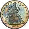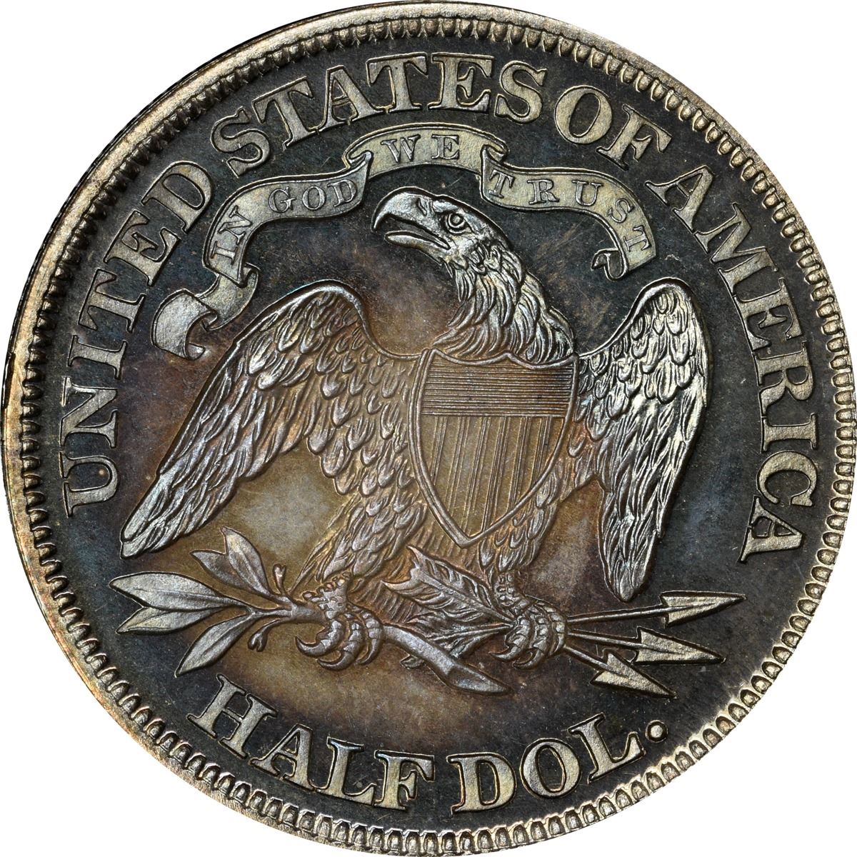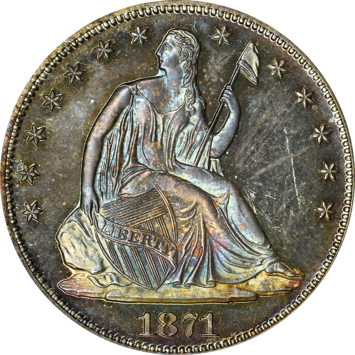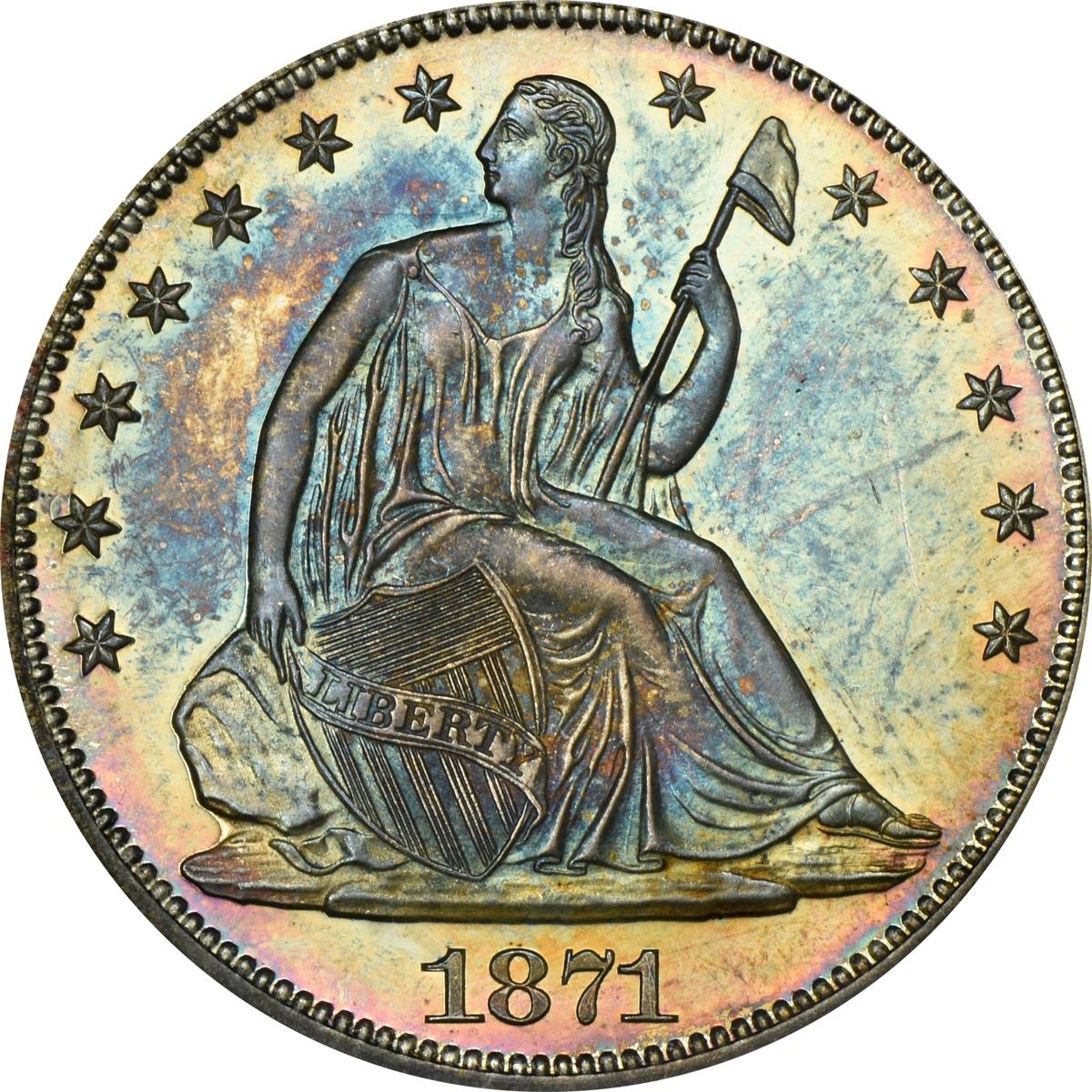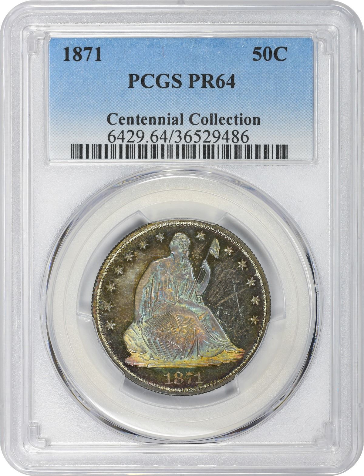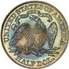 Alive with fiery electric blue, sea-green, rose, and varied orange iridescence on both sides, this colorful Proof enjoys deeply mirrored fields and lightly frosted motifs. Undeniably choice and equally as attractive. PCGS #6429